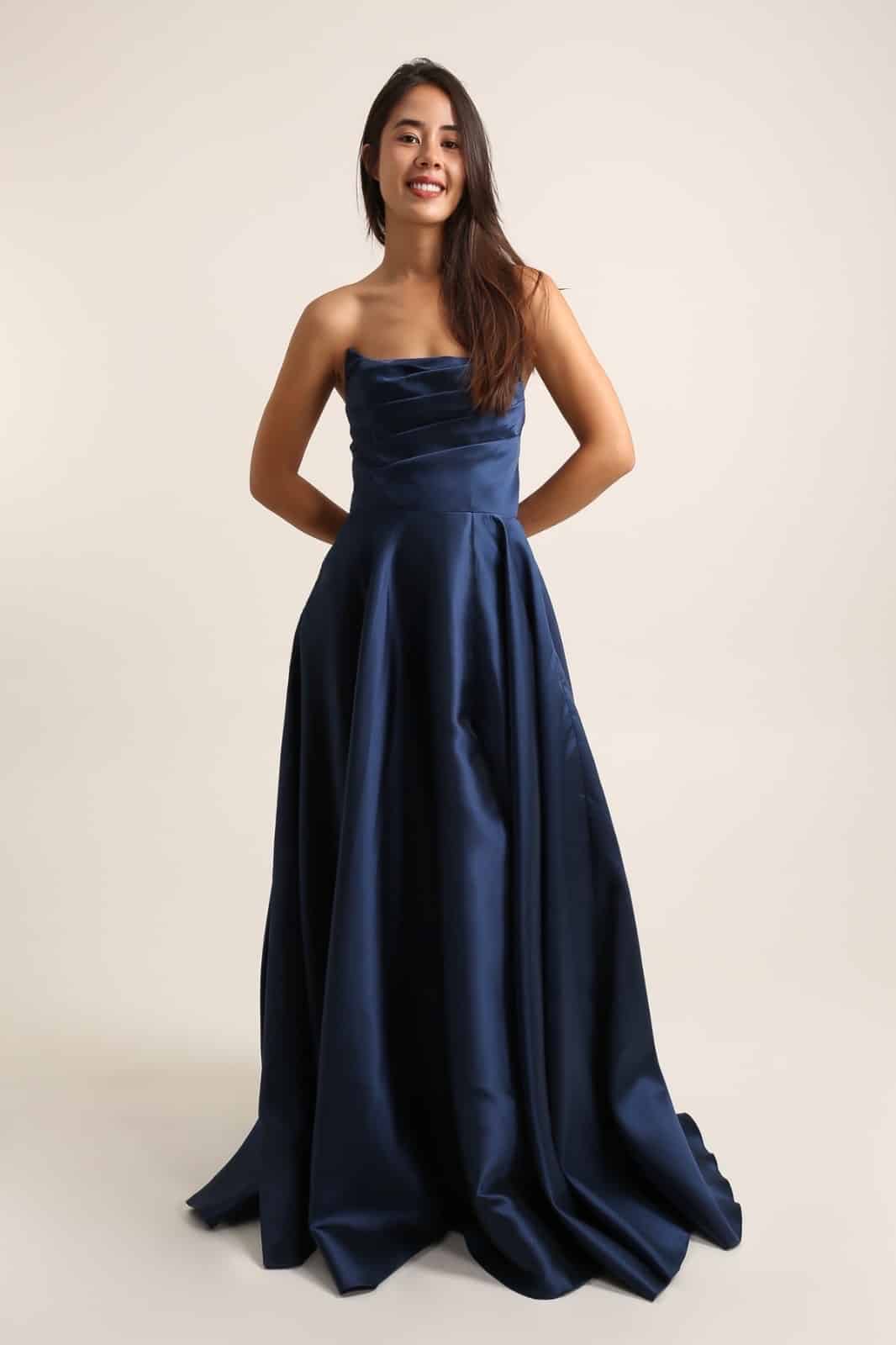 Deze galajurk van hoogwaardige mikado zijde heeft een luxueuze uitstraling en een elegante pasvorm die je figuur prachtig accentueert. De stevige, glanzende stof zorgt voor een koninklijke look en maakt deze jurk perfect voor elke feestelijke gelegenheid.